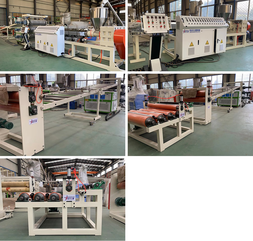 PE化學(xué)發(fā)泡片生產(chǎn)線:該設(shè)備采用120-30比1單螺桿擠出機、液壓自動換網(wǎng)器、可調(diào)模具、立式三輥壓光機、三合一輥筒恒溫機、不銹鋼冷卻托架裝并裝靜電處理裝置及有寬幅可調(diào)的合金切邊刀、橡膠輥牽引機、雙工位氣漲軸收卷機。全線采用:日本歐姆龍智能溫控儀、施耐德低壓電器、國內(nèi)馳名品牌變頻調(diào)速器。