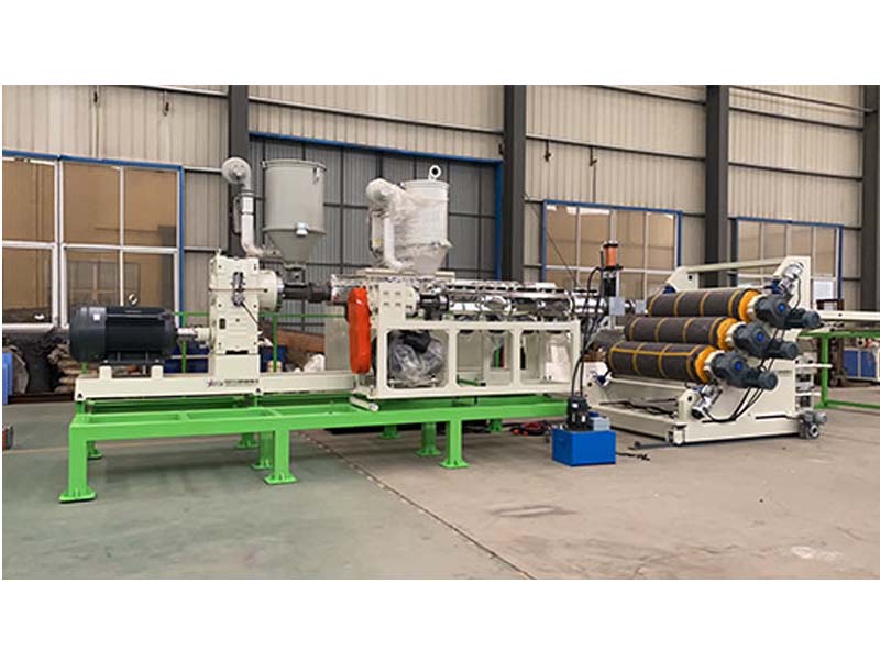 PP三層共擠片材生產(chǎn)線:可生產(chǎn)寬度750-1500毫米、厚度0.2-2毫米、單層/雙層/三層的塑料片材。該設(shè)備采SJ90-33/1和SJ75-30/1單螺桿擠出機、液壓自動換網(wǎng)器、A+B+A三層共擠分配器、T型彈性模口可調(diào)模具、斜45度三輥壓光機、三合一水溫機、不銹鋼冷卻托架并裝有寬幅可調(diào)切邊刀、橡膠輥牽引機、雙工位氣漲軸收卷機。生產(chǎn)線采用符合人體工位學(xué)的電控柜:歐姆龍智能溫控系統(tǒng)、西門子低壓電器、國內(nèi)外馳名品牌變頻調(diào)速器。