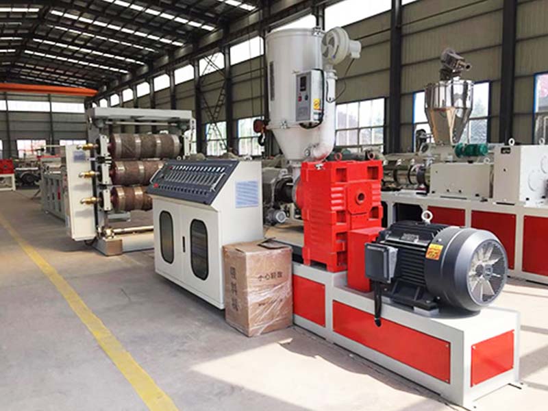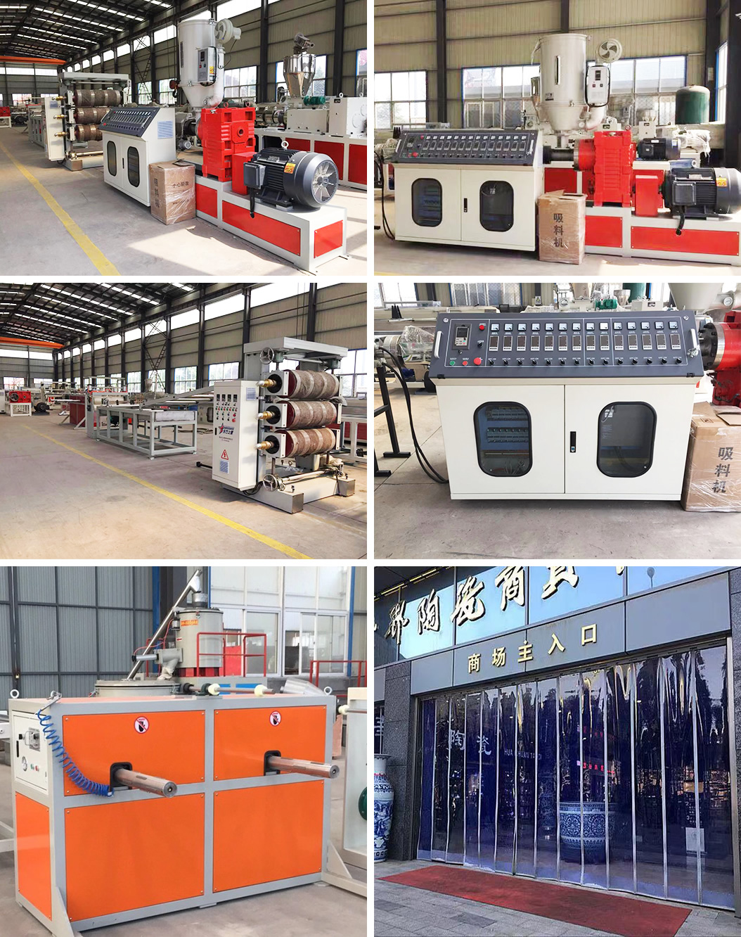 PVC透明軟門簾生產(chǎn)線:可生產(chǎn)寬度200-600毫米、厚度0.8-3毫米的PVC透明塑料片材。該設(shè)備采SJ90或SJ-120單螺桿擠出機(jī)、T型彈性??诳烧{(diào)模具、立式或斜45度三輥壓光機(jī)、三合一水溫機(jī)、不銹鋼冷卻托架裝并裝有寬幅可調(diào)切邊刀、橡膠輥牽引機(jī)、雙工位氣漲軸收卷機(jī)。所生產(chǎn)的片材表面光澤,通透無(wú)暇,柔軟,無(wú)裂縫、無(wú)異味、無(wú)氣泡、柔軟耐寒、耐磨、耐酸堿、耐腐蝕。