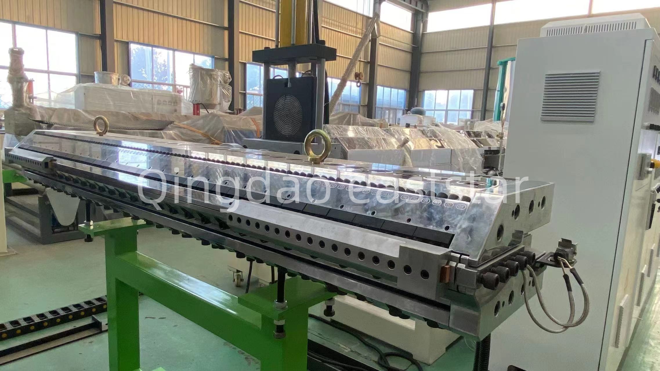 PE排水板生產(chǎn)線的模具系統(tǒng)采用衣架式流道設(shè)計(jì),模具寬度1650mm,可生產(chǎn)0.8-1.2mm厚度的單層排水板。模具流道表面鍍鉻處理,拋光至鏡面效果,型腔粗糙度Ra0.1um,模唇粗糙度Ra0.05um。兩輥成型裝置配備Φ450×1700mm輥筒,輥面硬度HRC58-62,鍍鉻厚度0.08mm,通過特殊多流道設(shè)計(jì)確保溫度均勻。這些專業(yè)配置保障了