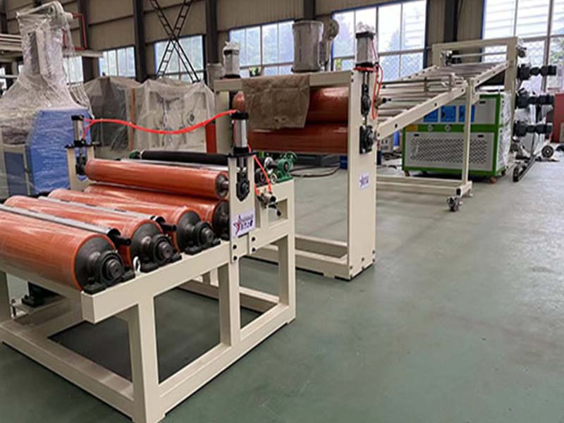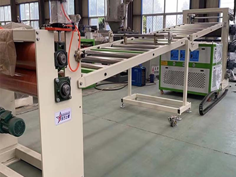 PE化學(xué)發(fā)泡片生產(chǎn)線:該設(shè)備采用120-30比1單螺桿擠出機、液壓自動換網(wǎng)器、可調(diào)模具、立式三輥壓光機、三合一輥筒恒溫機、不銹鋼冷卻托架裝并裝靜電處理裝置及有寬幅可調(diào)的合金切邊刀、橡膠輥牽引機、雙工位氣漲軸收卷機。全線采用:日本歐姆龍智能溫控儀、施耐德低壓電器、國內(nèi)馳名品牌變頻調(diào)速器。